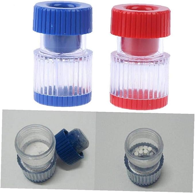 • Crush tablets into a fine powder by twisting the top of this attractive red and clear crusher